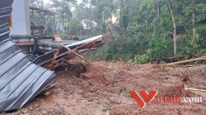 Sebuah tebing yang berada di Kp Tegal Datar-Nagrog, Desa Bantaragung, Kecamatan Jampangtengah mengalami longsor.