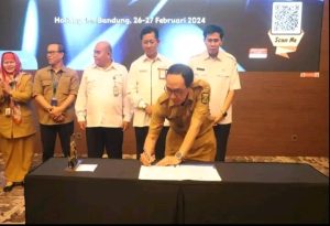 Dalam kesempatan itu Sekda Kab. Sukabumi Ade Suryaman turutserta menandatangani Komitmen dan Berita Acara Rembuk Stunting Provinsi Jawa Barat Tahun 2024.