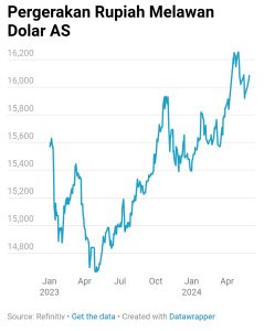 Dilansir dari Refinitiv, rupiah ditutup terdepresiasi 0,16% di angka Rp16.085/US$ pada akhir perdagangan kemarin, Selasa (28/5/2024). Pelemahan rupiah ini senada dengan penurunan sehari sebelumnya yang terjadi sebesar 0,44%.
