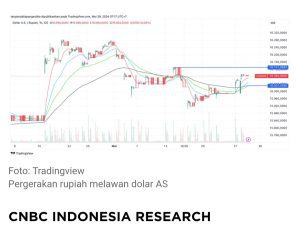 Pergerakan rupiah secara teknikal dalam basis waktu per jam masih dalam tren pelemahan. Pelaku pasar bisa mencermati resistance atau potensi area pelemahan terdekat yang bisa diuji di Rp16.130/US$. Ini diambil dari garis lurus yang ditarik berdasarkan high candle intraday pada 14 Mei 2024.