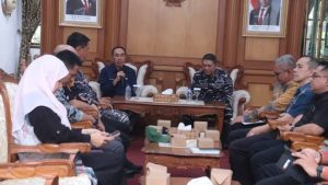 Wartain.com || Komandan Pangkalan TNI Angkatan Laut (Danlanal) Bandung, Kolonel Laut (P) Muhamad Taufik melakukan kunjungan kerja ke Kabupaten Sukabumi dan disambut langsung oleh Sekretaris Daerah Kabupaten Sukabumi, H Ade Suryaman serta unsur Forkopimda dan Camat Palabuhanratu, di Pendopo Palabuhanratu, Kamis (8/5/2025).